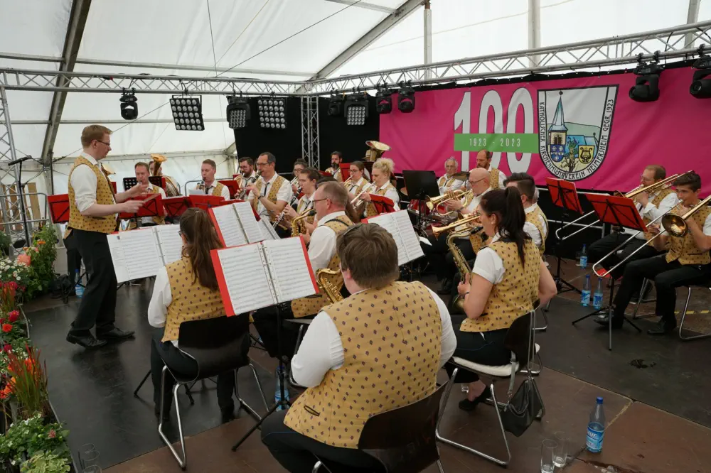 Das Diözesanmusikfest 2023 fand in Alzey-Heimersheim am Pfingstmontag, dem 29. Mai 2023 statt. Gleichzeitig feierten wir auch das 75-jährige Jubiläum unseres Verbands. Der Tag begann mit einem Gottesdienst im Festzelt, der musikalisch von einem 70-köpfigen Verbandsorchester begleitet wurde. Nach dem anschliessenden Freunschaftsspielen von sechs Vereinen aus dem Verband, folgte noch ein Abschlußmarsch aller anwesenden Musiker*innen, unter der Leitung unseres Präsidenten Peter Höflich. Ein großer Dank an den ausrichtenden KMV Heimersheim, in dessen mehrtägige Jubiläumsveranstaltung wir unser Diözesanmusikfest betten durften.Viel Spaß mit den „Impressionen - Diözesanmusikfest“!Berechtigte Einzelbildwünsche in hoher Auflösung (auch bzgl. anderer Bilder des Festes, die in dieser Auswahl nicht enthalten sind), gerne per E-mail anfordern.